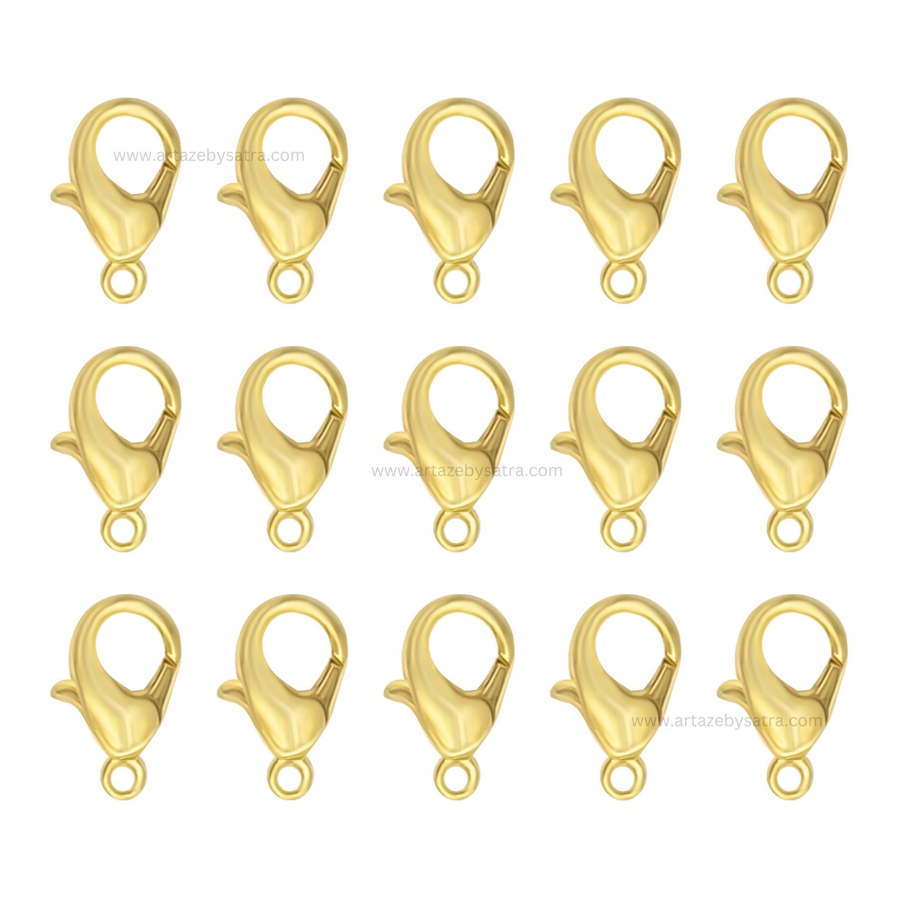 Secure your jewelry creations with our Lobster Claw Clasps.These clasps offer durability and a reliable hold for bracelets, necklaces, and anklets. Their sleek and easy-to-use design ensures a secure closure, adding both functionality and style to your pieces. Perfect for both professional and DIY jewelry makers, our Lobster Claw Clasps are essential for any jewelry-making project.