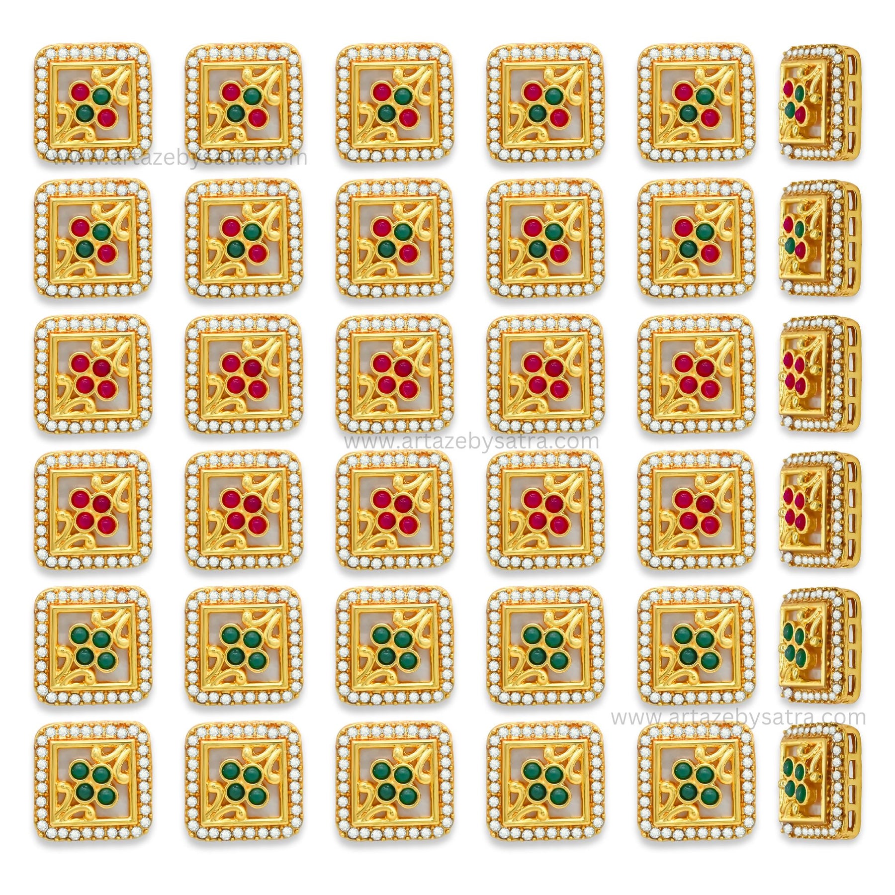 Elevate your beadwork with these versatile gold-toned round spacer beads showcasing a lovely white enamel base and intricate gemstone inlays. Choose from sparkling crystals, rich rubies, or vibrant emeralds to create unique and eye-catching designs.