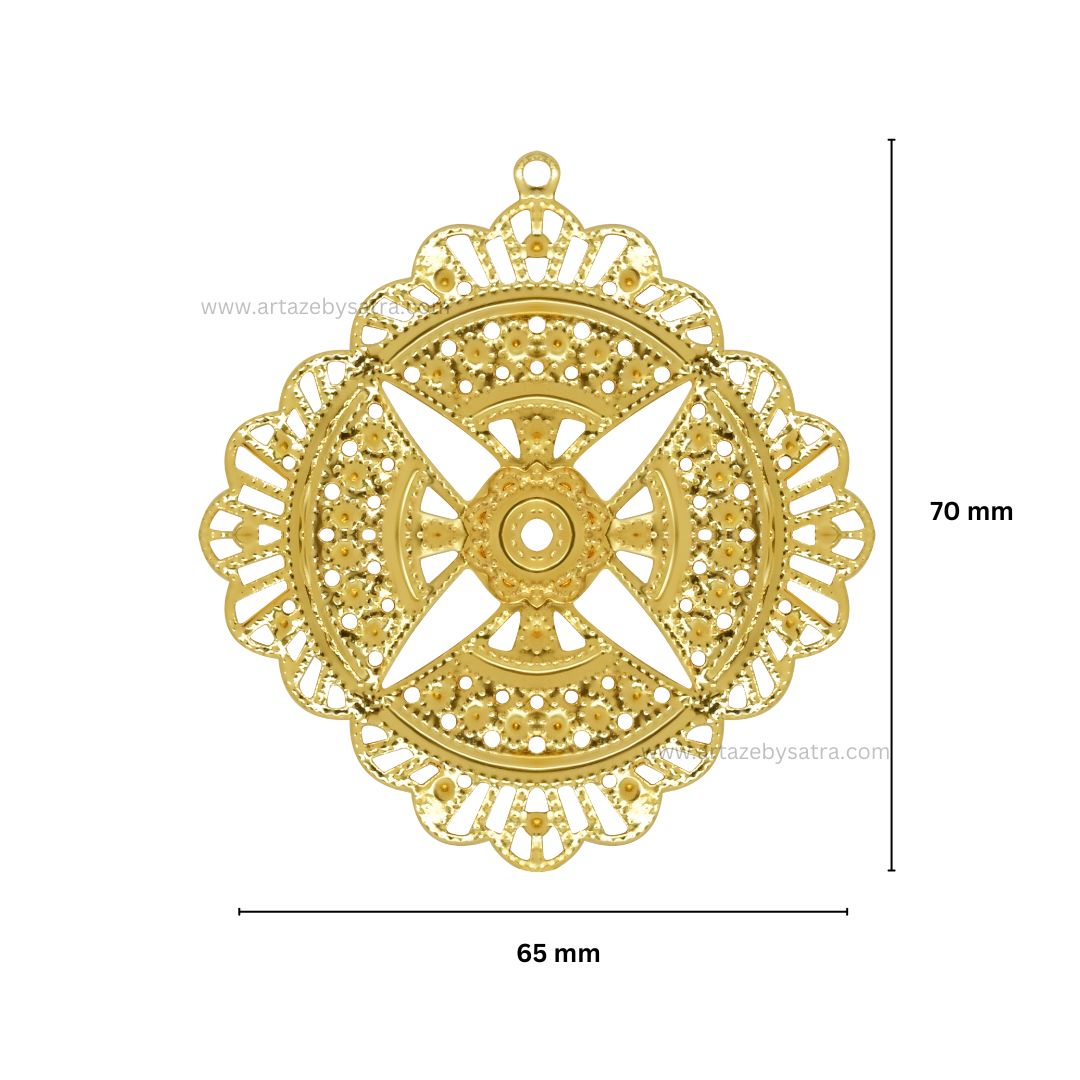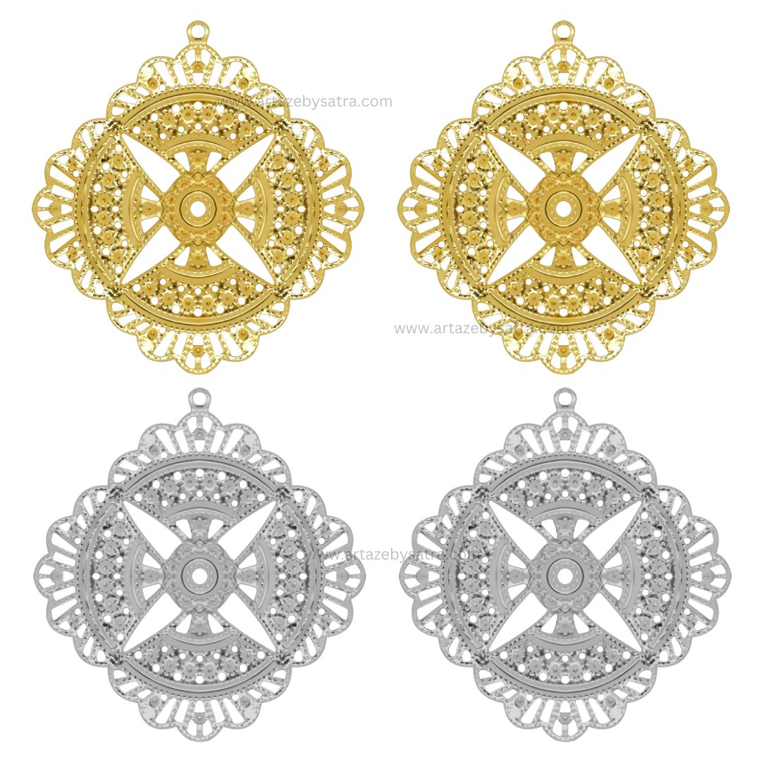 2 Loop Round Floral Matt Finish Metal Art | Size : 40mm | Qty : 10pcs | MA380