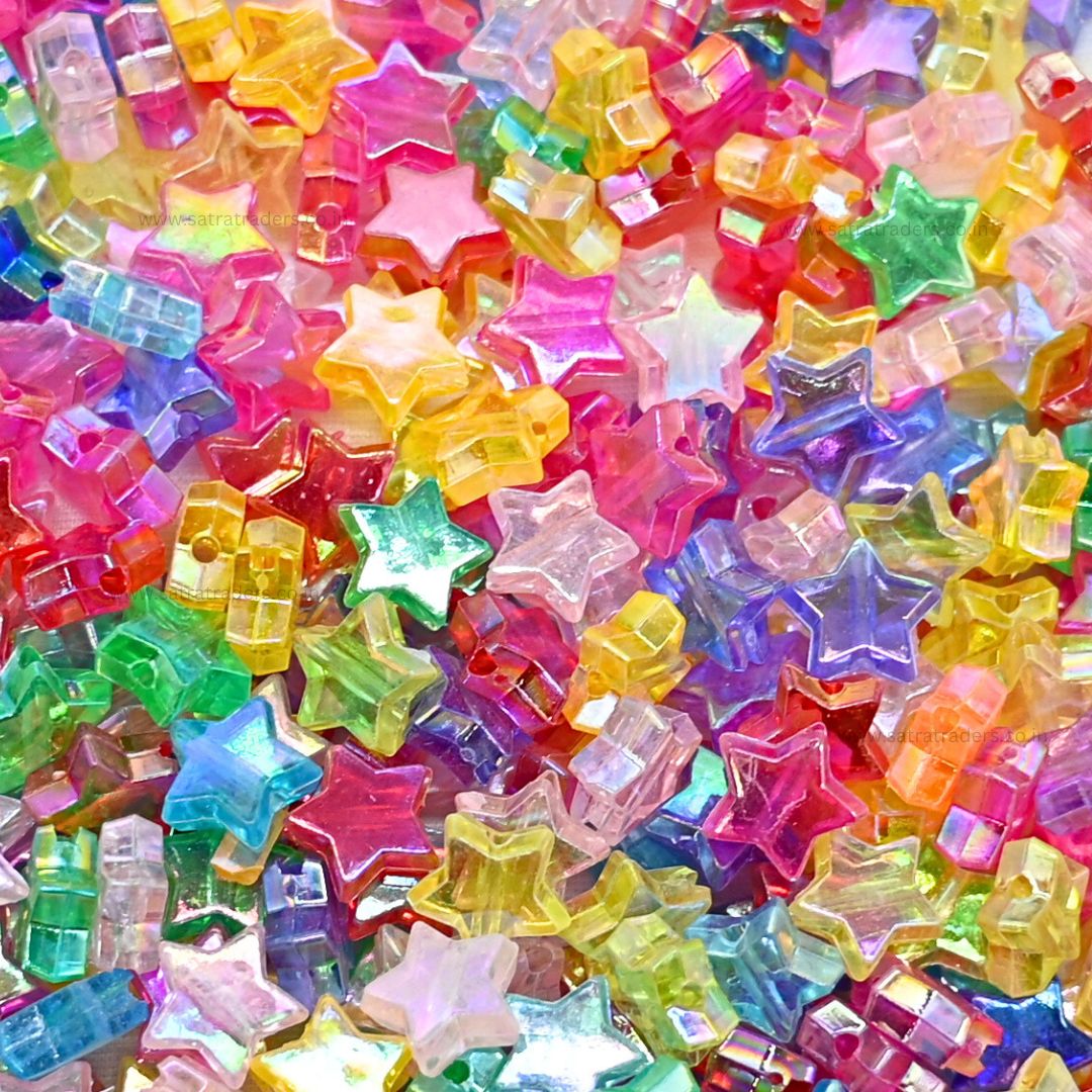 Assorted Star Transparent Pastel Plastic Beads | Size : 18mm | 100g | PB22