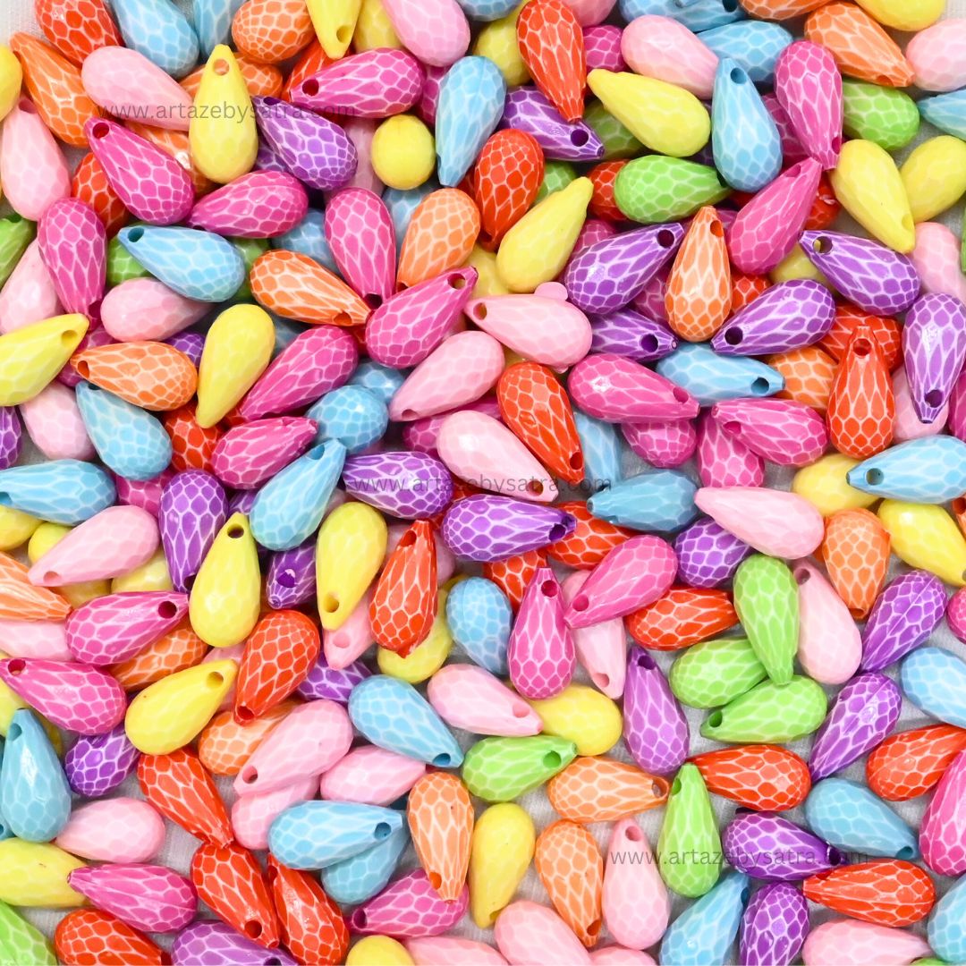 Bring the vibrant beauty of the ocean to your crafts with our enchanting collection of Textured Teardrop Beads! This generous 100-gram pack features a delightful assortment of iridescent acrylic beads shaped like miniature scallop shells. Each bead boasts a unique, that reflects light in a captivating array of pastel colors, including pink, orange, yellow, green, blue, purple, and white.